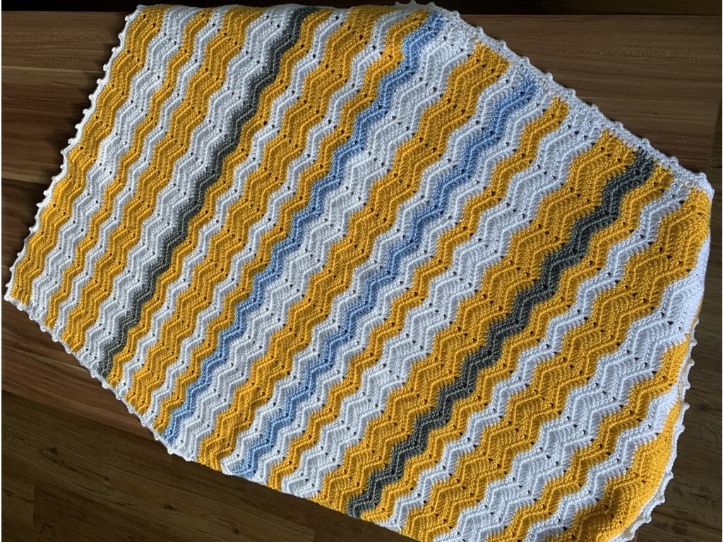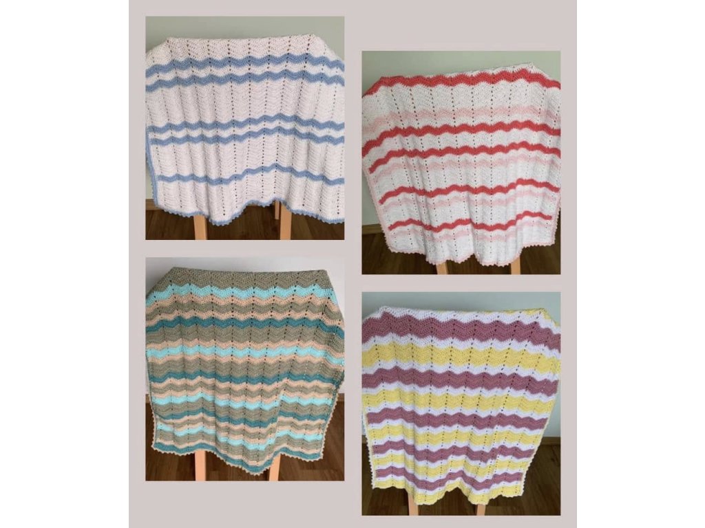 Rozměry deček 70 cm x 90 cm (+- pár cm), cik-cak vzor, holčičí i klučičí barvy.